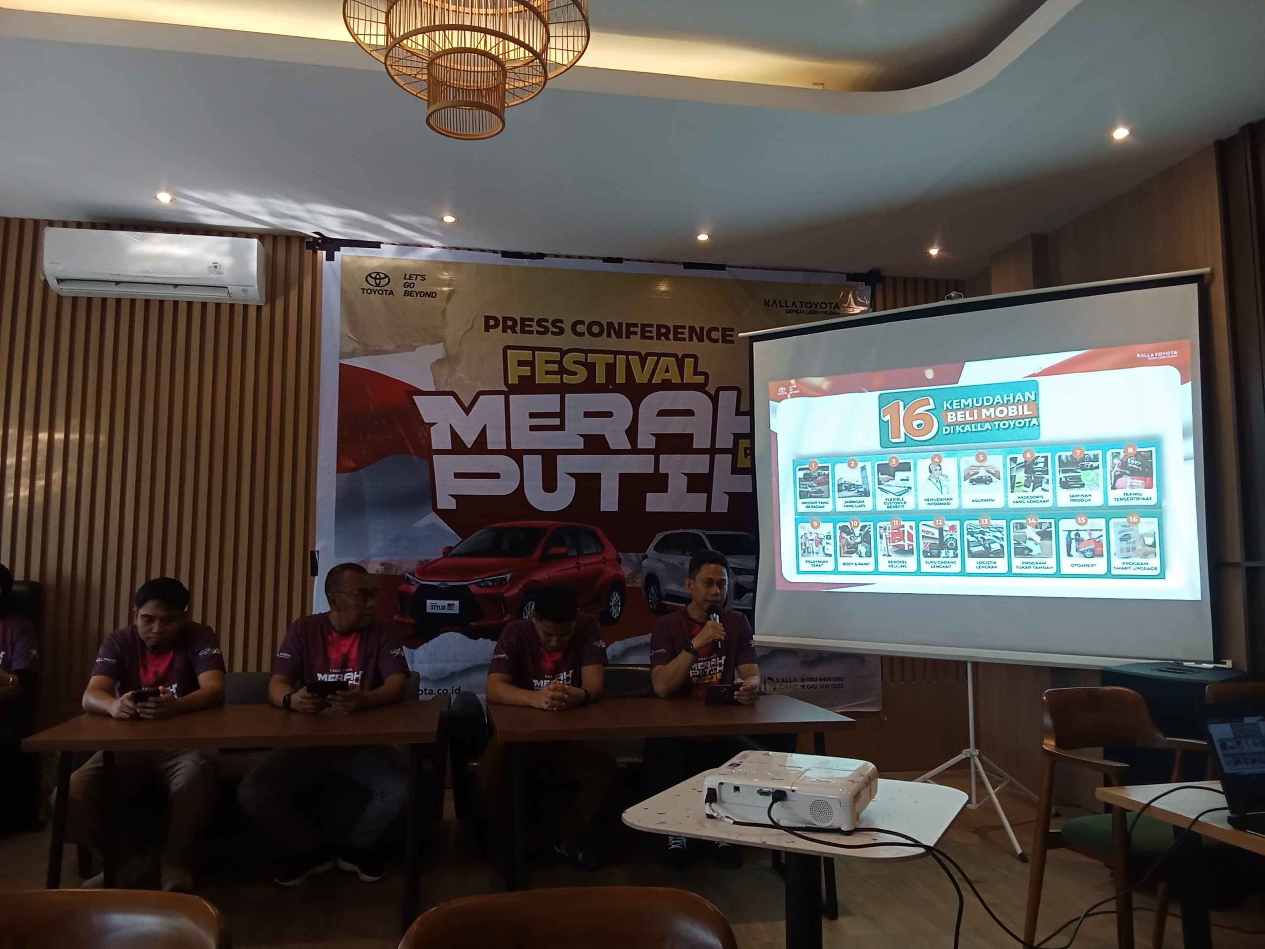 PALOPO – Kalla-Toyota Cabang Palopo siap menggelar event promo bertajuk “Festival Merah Putih” pada Minggu, 24 Agustus 2025. Acara ini diumumkan dalam konferensi pers di The Icon Cafe Palopo, Jumat (22/8/2025), oleh Branch Manager Kalla-Toyota Palopo, Hendrayansyah.