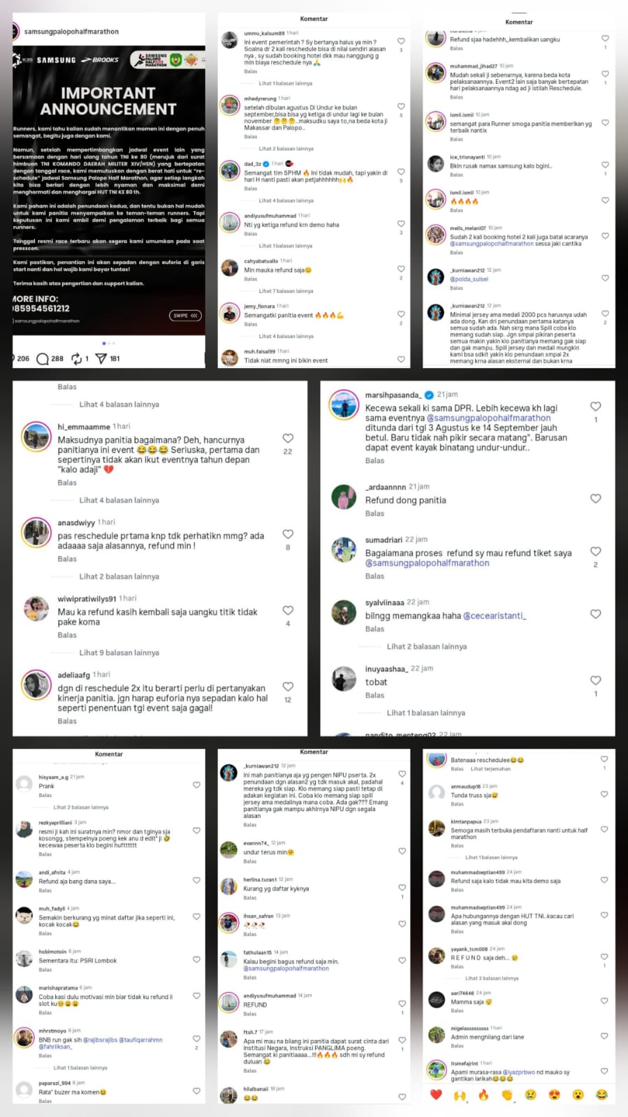 Di tengah derasnya kritik, ada segelintir komentar yang masih berusaha menyemangati panitia. Namun, suara mayoritas jelas mengarah pada desakan pengembalian dana. Bahkan, beberapa peserta mengancam akan menggelar aksi protes bila refund tidak segera diproses.