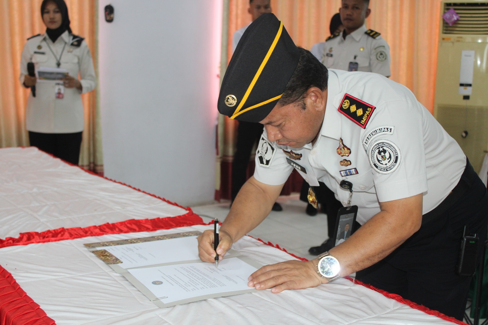 Usai pengarahan, kegiatan dilanjutkan dengan penandatanganan Komitmen Bersama oleh pejabat pusat dan wilayah sebagai simbol keseriusan dan tanggung jawab dalam mewujudkan tata kelola pemerintahan yang baik di lingkungan Kemenimipas.