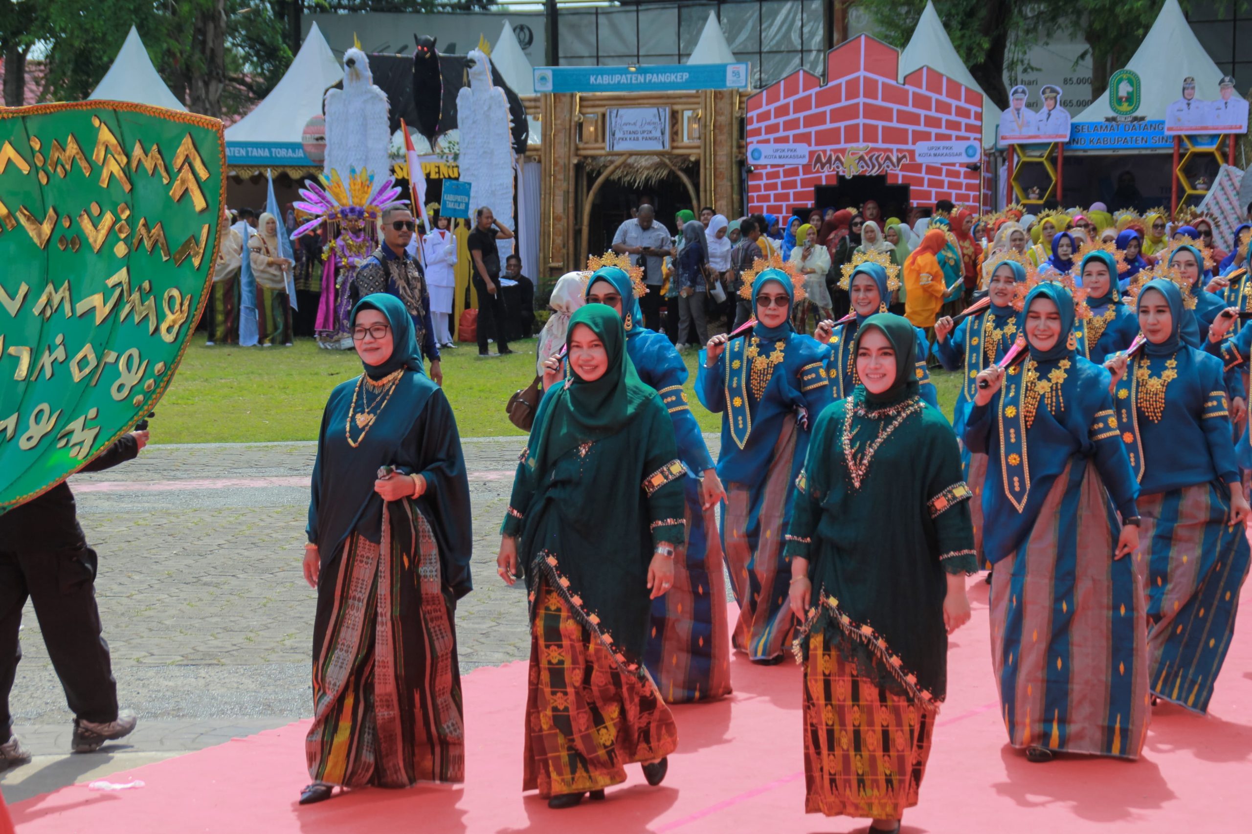 Luwu – Ketua Tim Penggerak Pemberdayaan dan Kesejahteraan Keluarga (TP-PKK) Kabupaten Luwu, Hj. Kurniah Patahudding, bersama Ketua Bidang I, Nilasari Dhevy Bijak P, memimpin defile pada pembukaan Jambore Kader PKK dan Peringatan Hari Kesatuan Gerak (HKG) PKK ke-53 Tingkat Provinsi Sulawesi Selatan, yang digelar di Lapangan Merdeka, Watampone, Kabupaten Bone, Jumat (3/10/2025).
