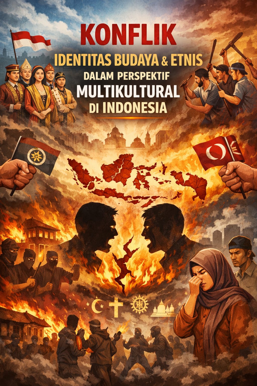 Indonesia dikenal sebagai negara yang memiliki keberagaman budaya, etnis, bahasa, dan agama yang sangat kaya. Keberagaman ini menjadi kekuatan sekaligus tantangan dalam kehidupan berbangsa dan bernegara. Dalam perspektif multikultural, perbedaan tersebut seharusnya menjadi dasar untuk saling menghargai, bukan justru memicu konflik. Konflik identitas budaya dan etnis biasanya muncul ketika terdapat perasaan superioritas suatu kelompok terhadap kelompok lain. Hal ini sering dipengaruhi oleh faktor sejarah, ekonomi, politik, maupun sosial yang tidak seimbang. Ketika satu kelompok merasa terpinggirkan, potensi konflik menjadi semakin besar.