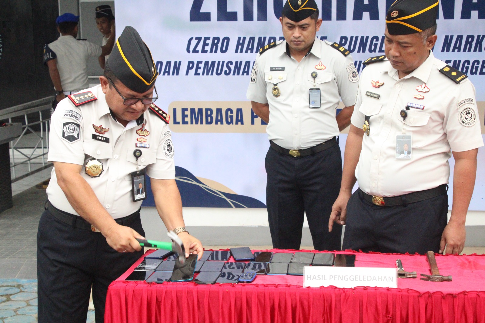 Usai pelaksanaan apel dan pembacaan ikrar, kegiatan dilanjutkan dengan pemusnahan barang bukti hasil sitaan dan penggeledahan, berupa 24 unit handphone. Pemusnahan dilakukan secara terbuka dengan cara dipecahkan dan dibakar, sebagai bentuk transparansi serta komitmen nyata Lapas Palopo dalam memberantas keberadaan barang-barang terlarang di dalam lapas.