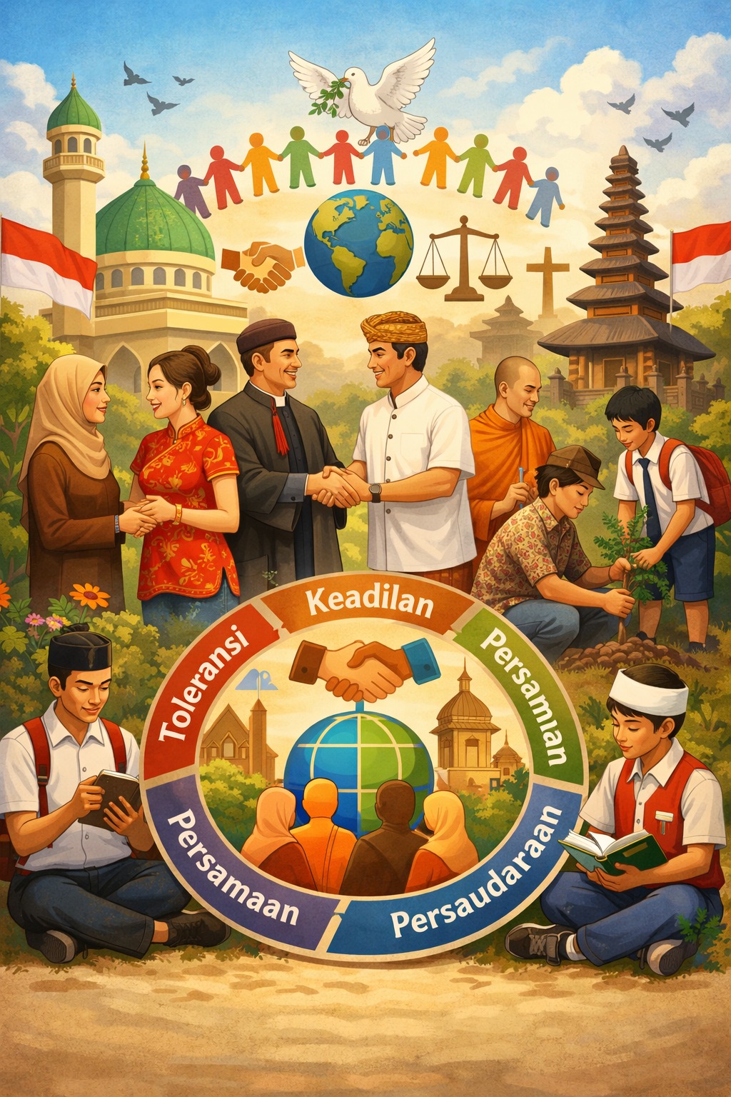 Nilai lain yang tidak kalah penting adalah keadilan. Islam mengajarkan bahwa setiap orang harus diperlakukan secara adil tanpa memandang latar belakangnya. Keadilan menjadi fondasi dalam menciptakan kehidupan sosial yang damai dan seimbang. Dalam konteks multikulturalisme, keadilan berarti memberikan hak yang sama kepada semua kelompok serta menghindari diskriminasi.