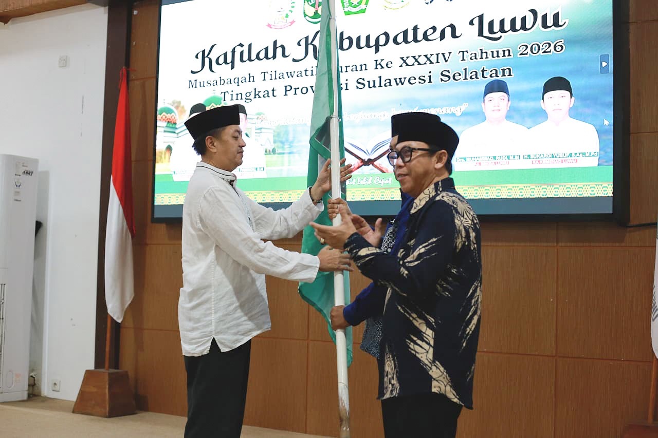 LUWU – Pemerintah Kabupaten Luwu secara resmi melepas kafilah untuk mengikuti ajang Musabaqah Tilawatil Qur’an (MTQ) XXXIV Tingkat Provinsi Sulawesi Selatan Tahun 2026. Kegiatan ini dirangkaikan dengan pengukuhan Pengurus Panitia Hari Besar Islam (PHBI) Kabupaten Luwu periode 2026–2030 di Aula Rumah Jabatan Bupati Luwu, Jumat (10/4/2026).