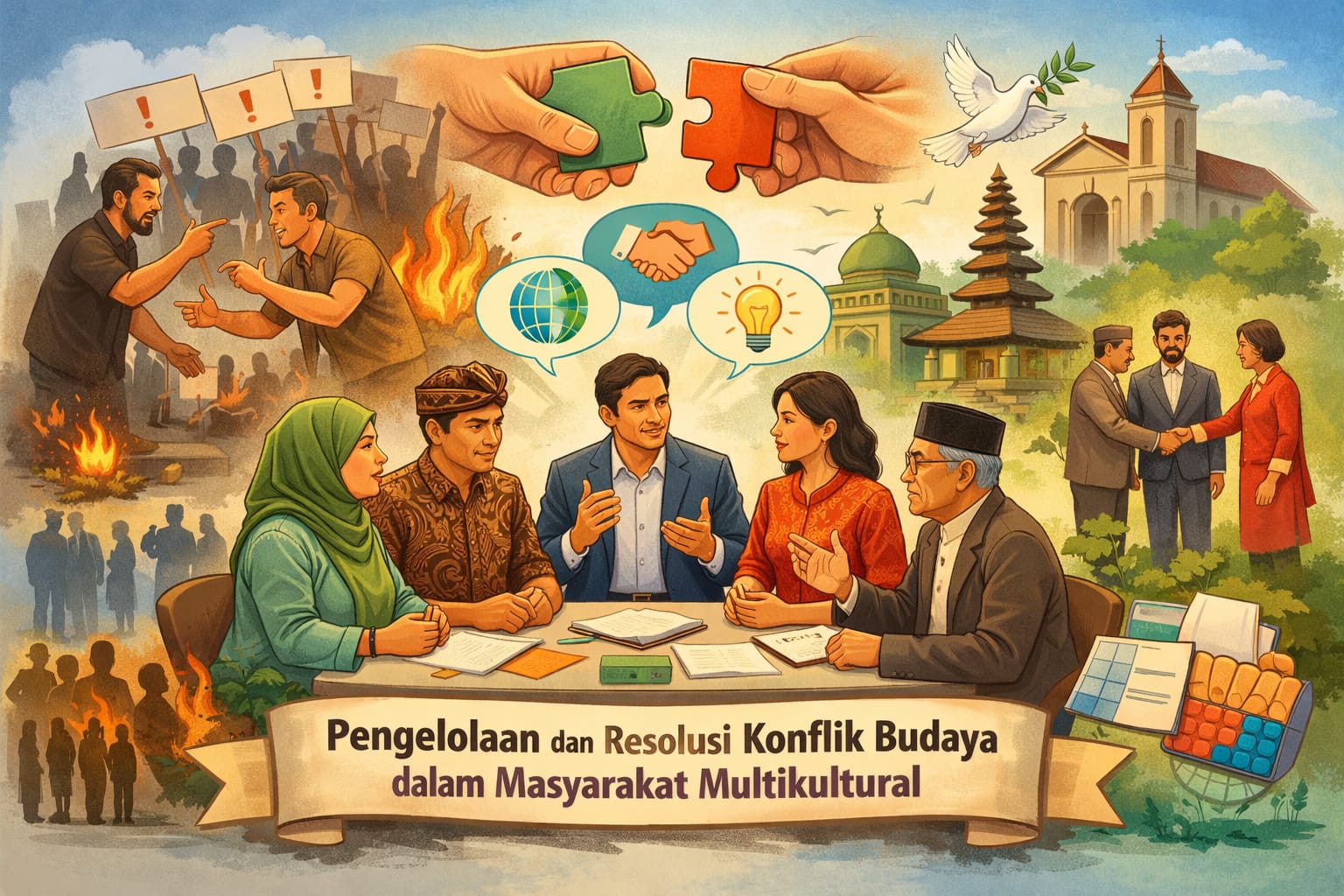 Peran berbagai pihak dalam pengelolaan dan resolusi konflik budaya sangatlah penting. Pemerintah memiliki tanggung jawab untuk menciptakan kebijakan yang adil, inklusif, dan tidak diskriminatif, serta memastikan bahwa setiap kelompok masyarakat mendapatkan perlakuan yang setara. Tokoh masyarakat dan tokoh agama juga berperan sebagai penengah yang dapat memberikan arahan dan nasihat kepada masyarakat agar tidak terprovokasi oleh konflik. Selain itu, lembaga pendidikan, organisasi sosial, dan media massa memiliki peran strategis dalam menyebarkan nilai-nilai toleransi dan memperkuat kesadaran akan pentingnya hidup rukun dalam keberagaman.