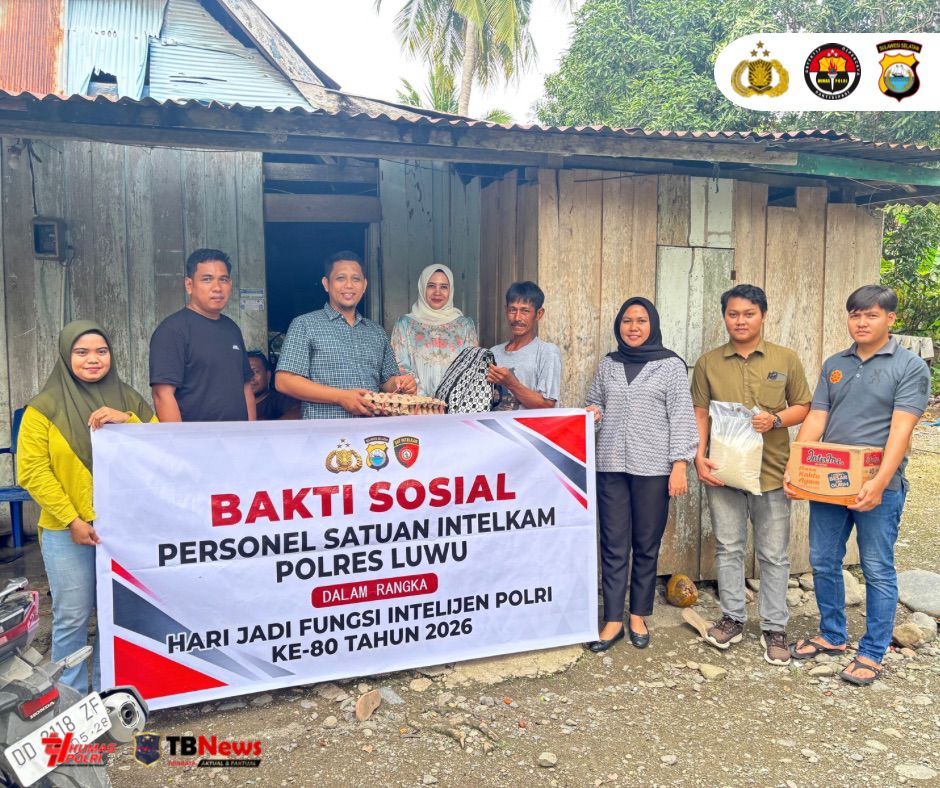 LUWU – Dalam rangka memperingati Hari Jadi Fungsi Intelijen Polri Tahun 2025, Satuan Intelijen dan Keamanan (Sat Intelkam) Polres Luwu melaksanakan kegiatan bakti sosial dengan membagikan bantuan berupa bingkisan kepada masyarakat lanjut usia (lansia) serta warga kurang mampu di wilayah Kabupaten Luwu, Selasa (30/12/2025).