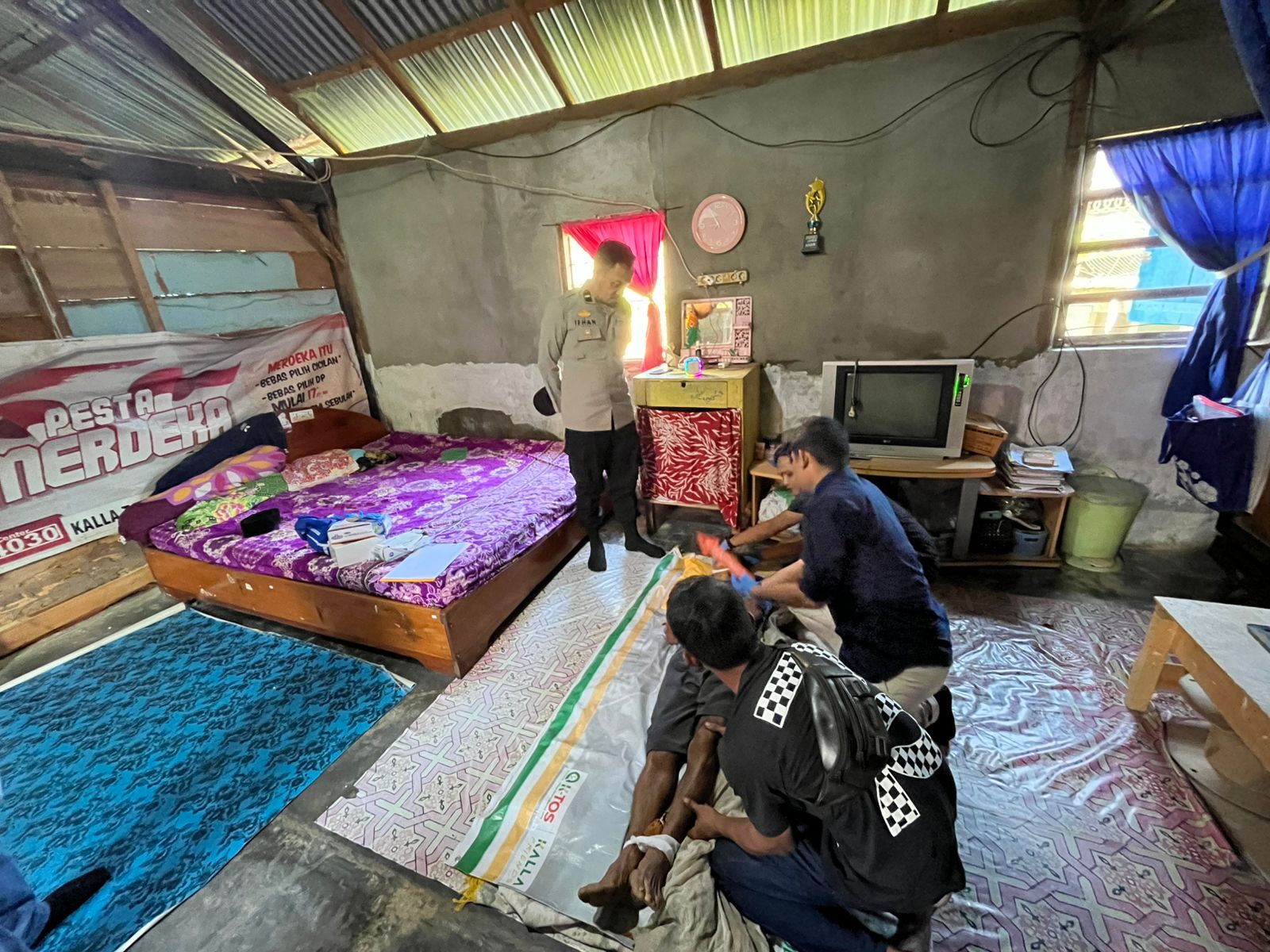 Sekitar pukul 22.00 Wita, R bersama warga membawa korban ke RS Palammai Tandi untuk mendapatkan perawatan medis.