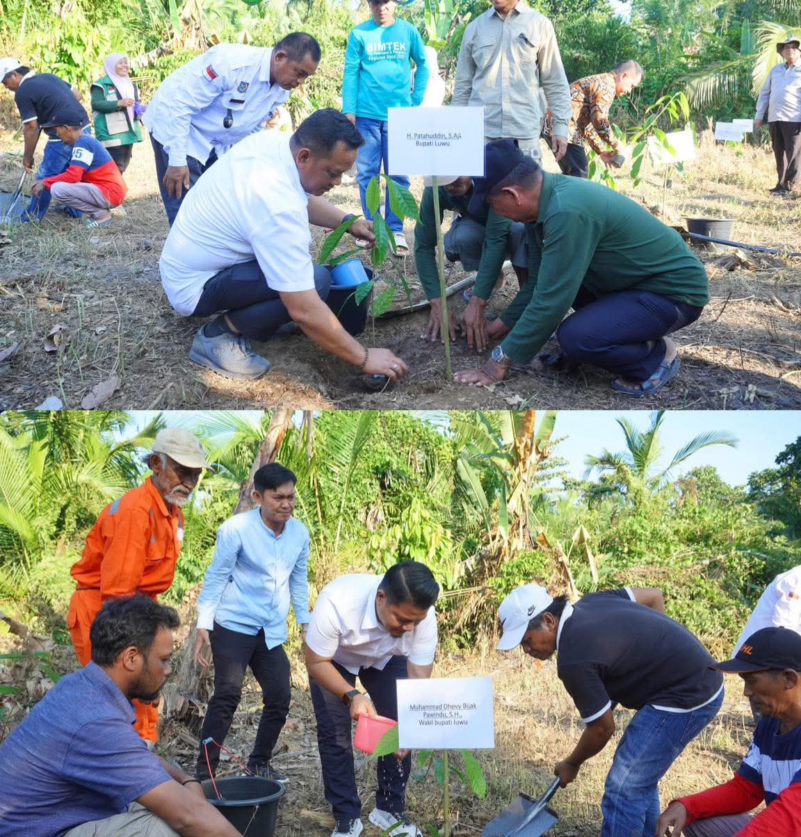 Usai sesi dialog, rombongan melanjutkan kunjungan ke Desa Sampeang, Kecamatan Bajo Barat, untuk melakukan peninjauan lapangan sekaligus penyerahan bibit kakao kepada masyarakat serta penanaman bibit kakao secara simbolis.