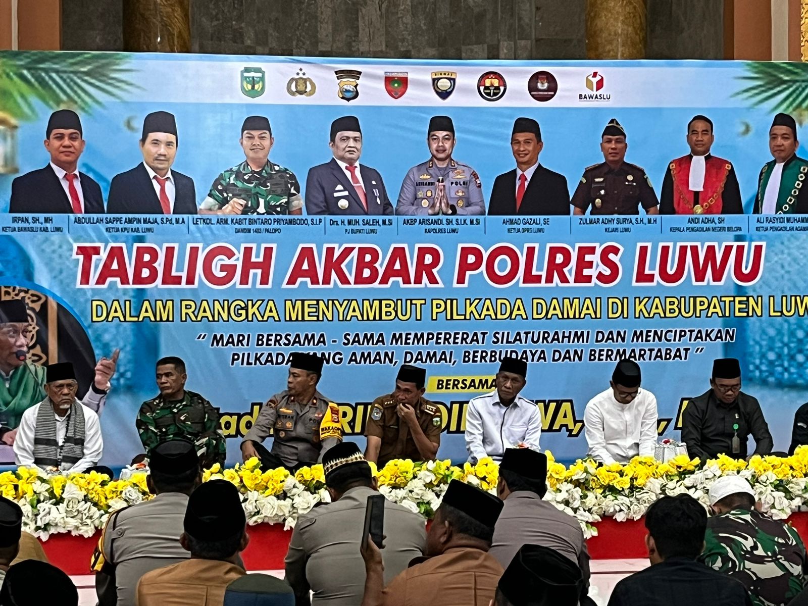 “Kegiatan ini merupakan bentuk komitmen Polres Luwu untuk terus menjaga keamanan dan ketertiban selama masa Pilkada. Melalui kegiatan Tabligh Akbar ini, kami ingin mengajak seluruh elemen masyarakat untuk bersama-sama menjaga kedamaian dan mendukung terciptanya Pilkada yang aman, damai, dan bermartabat. Polres Luwu siap memberikan pengamanan maksimal guna menciptakan suasana yang kondusif bagi seluruh warga.” Ucap Wakapolres.