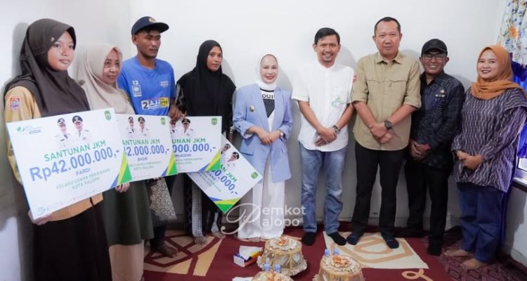 PALOPO – Wali Kota Palopo, Hj. Naili Trisal, menyerahkan bantuan santunan Jaminan