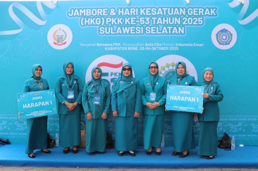 WATAMPONE – Jambore dan Hari Kesatuan Gerak (HKG) PKK Sulawesi Selatan 2025 resmi berakhir dengan prestasi membanggakan bagi Tim Penggerak PKK Kabupaten Luwu Utara. Tim yang dipimpin oleh Ketua TP PKK Luwu Utara, Misnawati Andi Abdullah Rahim, berhasil menyabet Juara Harapan I pada dua kategori lomba, yakni Pokja I Peningkatan Karakter Keluarga dan Pokja IV Ketangkasan Menjodohkan Program.