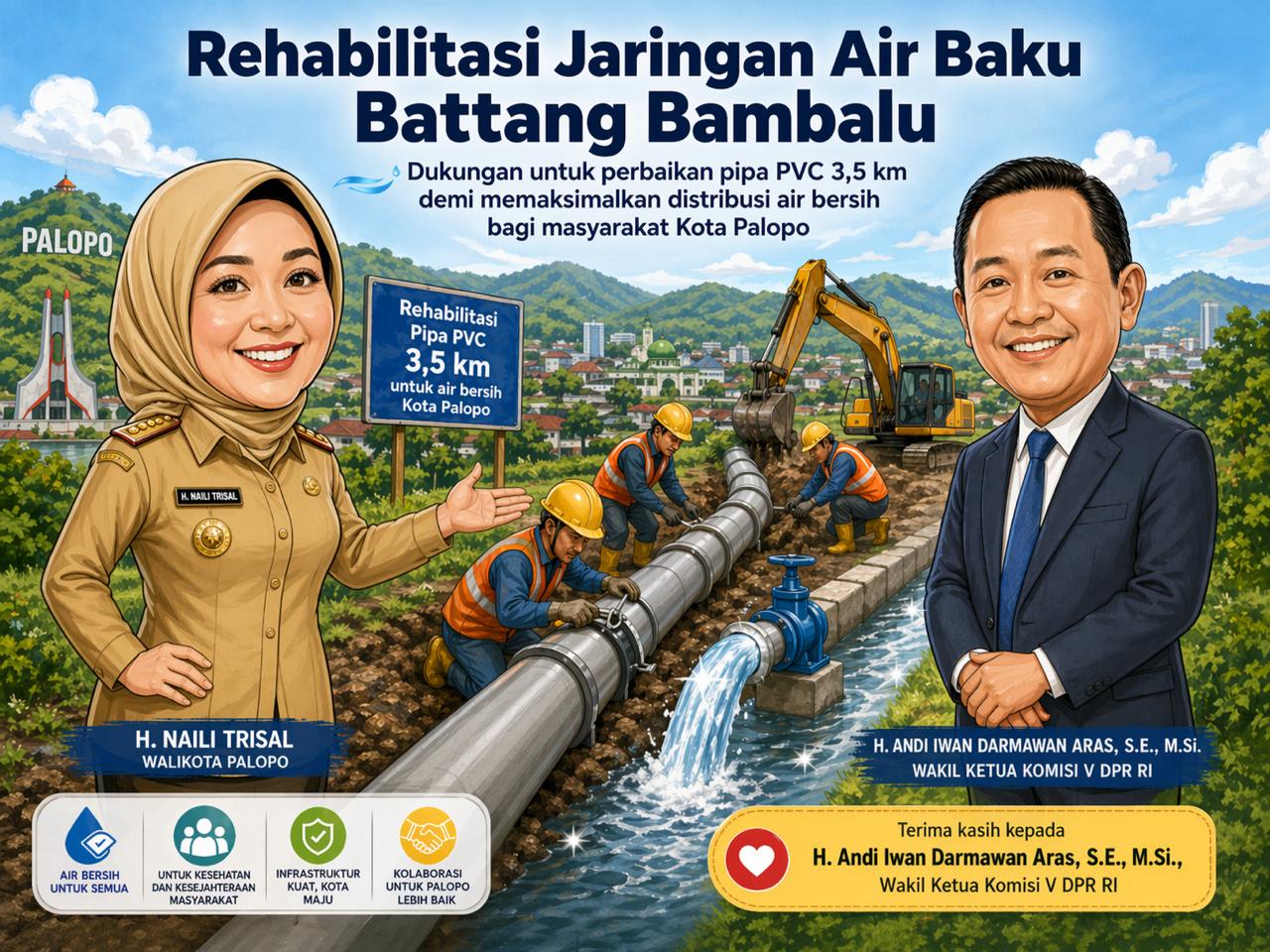 PALOPO — Komitmen Wali Kota Palopo, Naili Trisal, dalam memperjuangkan kebutuhan dasar masyarakat kembali membuahkan hasil. Pemerintah pusat melalui Kementerian Pekerjaan Umum resmi melaksanakan program rehabilitasi jaringan air baku Battang Bambalu dengan nilai HPS mencapai Rp23.999.835.682,40.