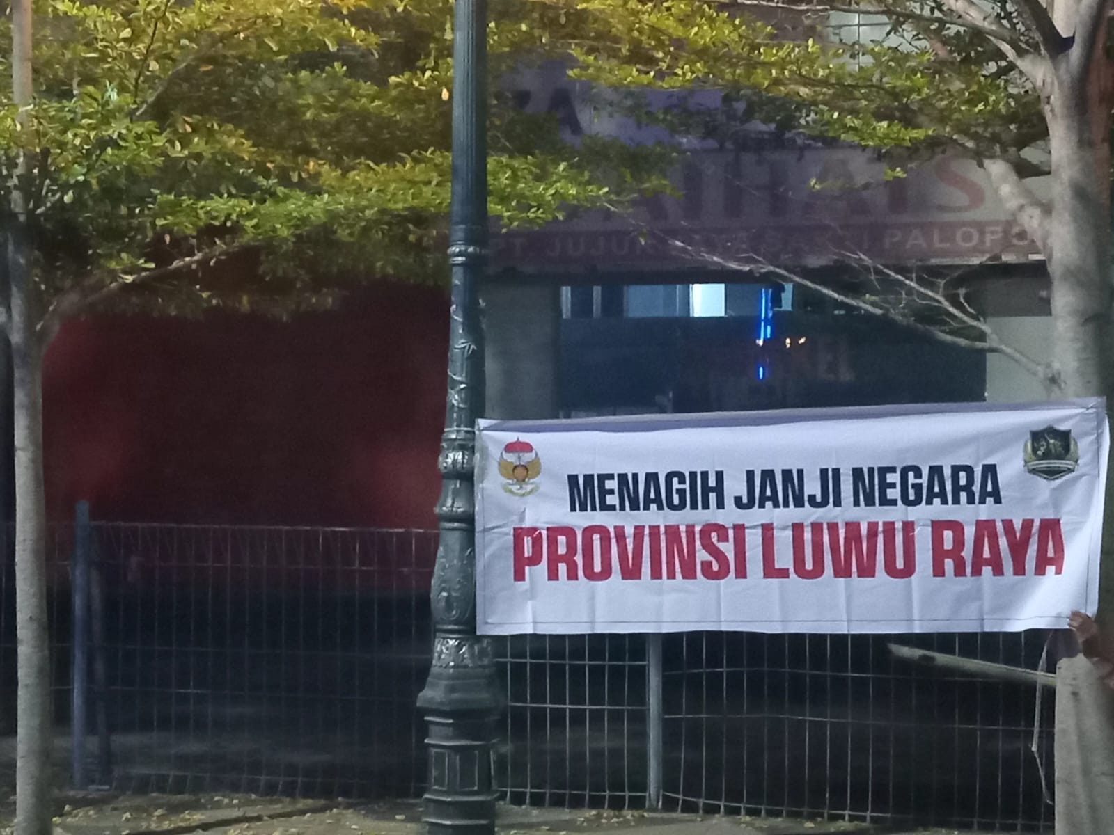 Pantauan di lapangan, terlihat beberapa spanduk berukuran 1 x 3 meter terpajang dengan tulisan besar: “Menagih Janji Negara Provinsi Luwu Raya.”
